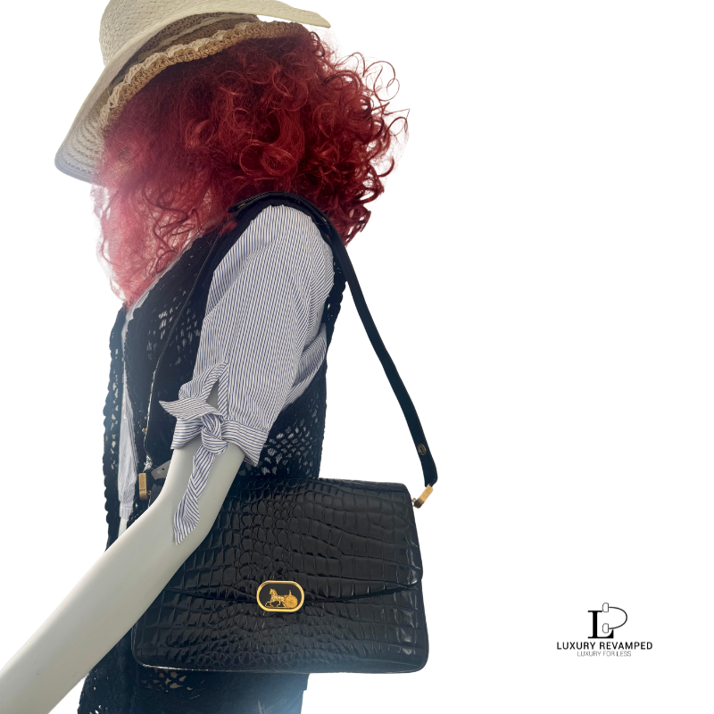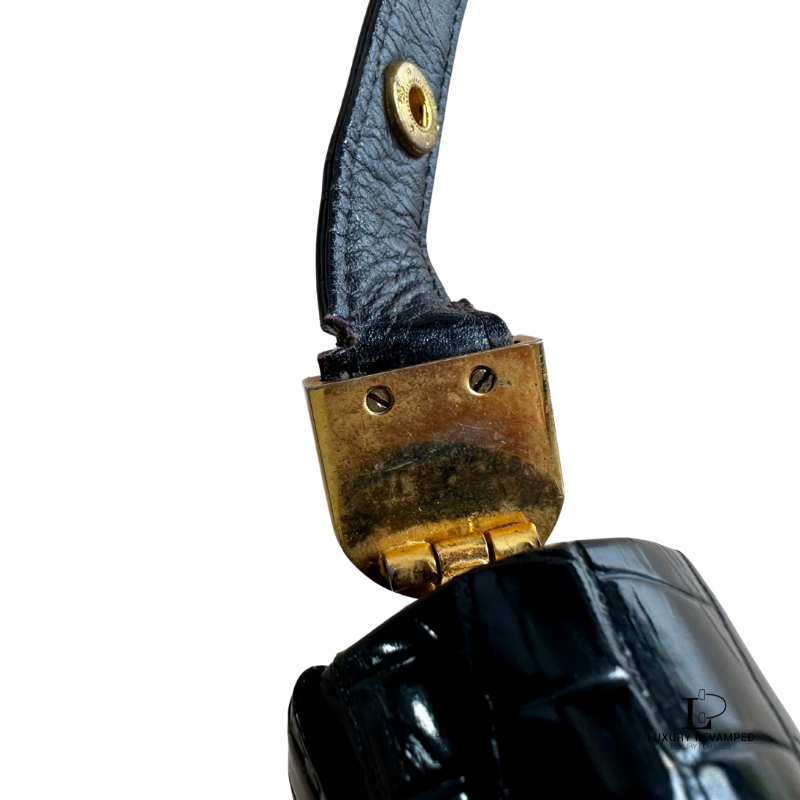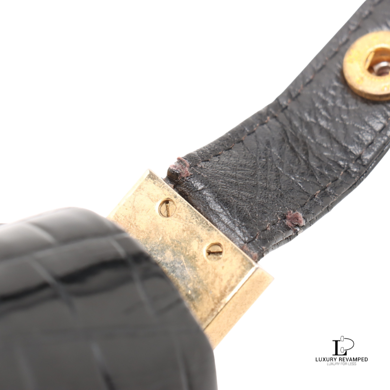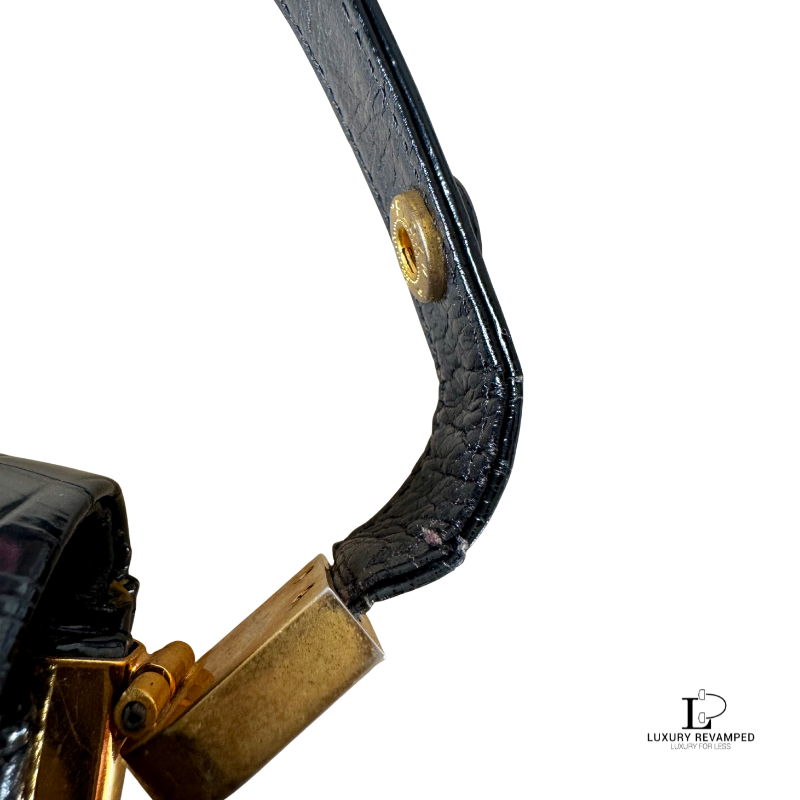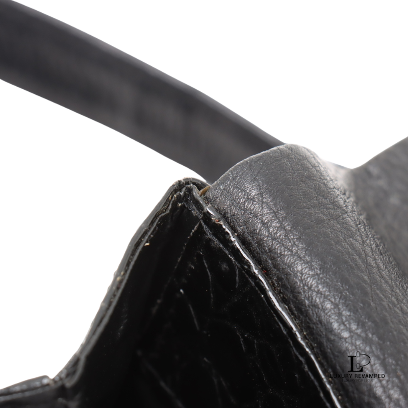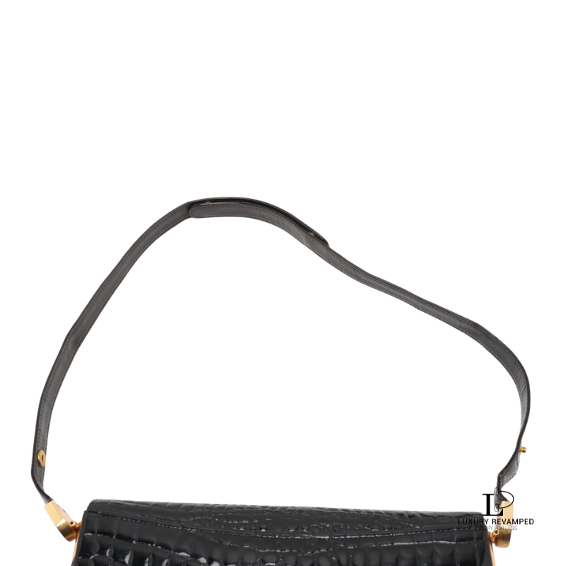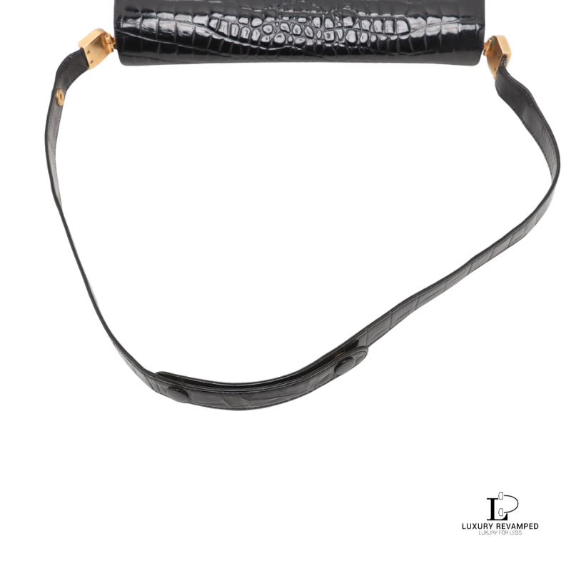 Refined and effortlessly sophisticated, the Celine Crocodile Embossed Triomphe Shoulder Bag is a true statement of timeless elegance.