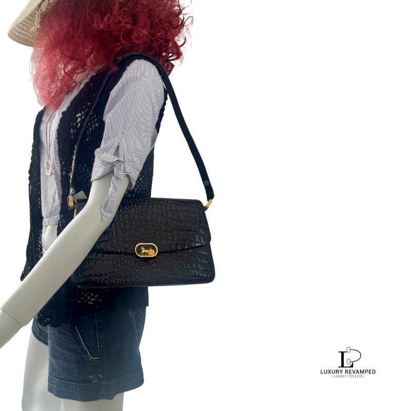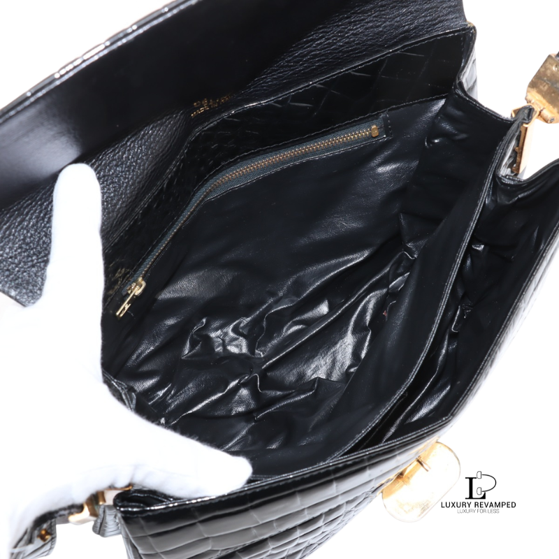 Stylish and elegant shoulder bag from Celine, thanks for the moc-croc material and the gold metal hardware that gives this bag an elegant look.