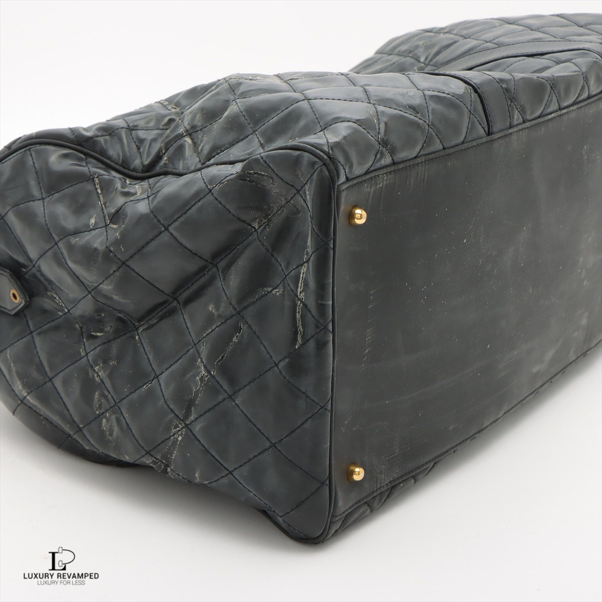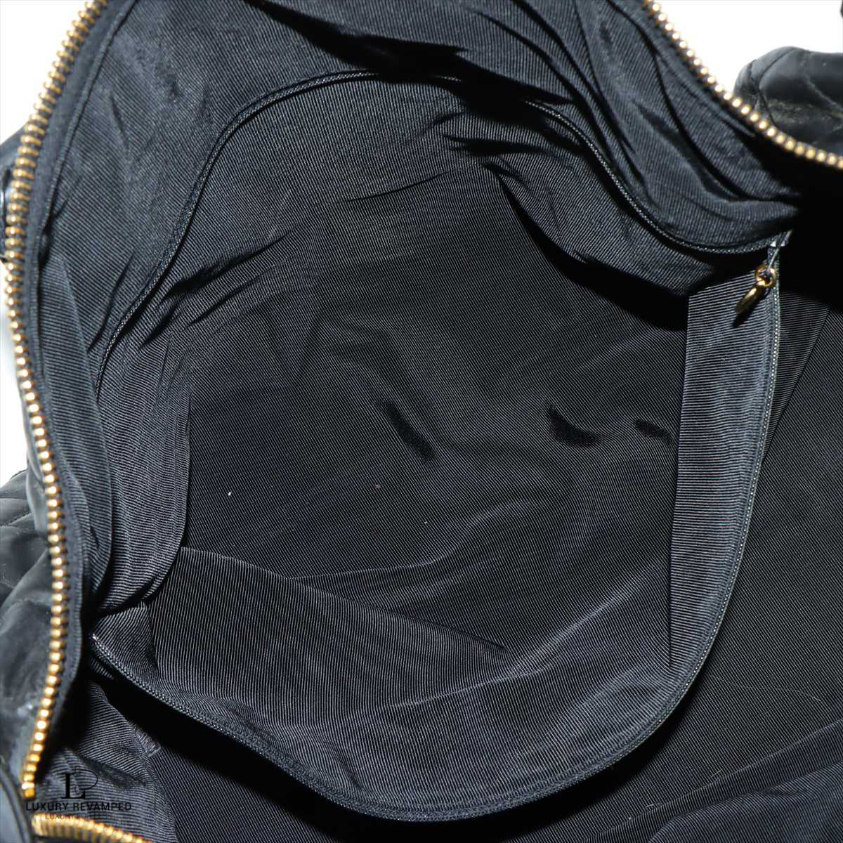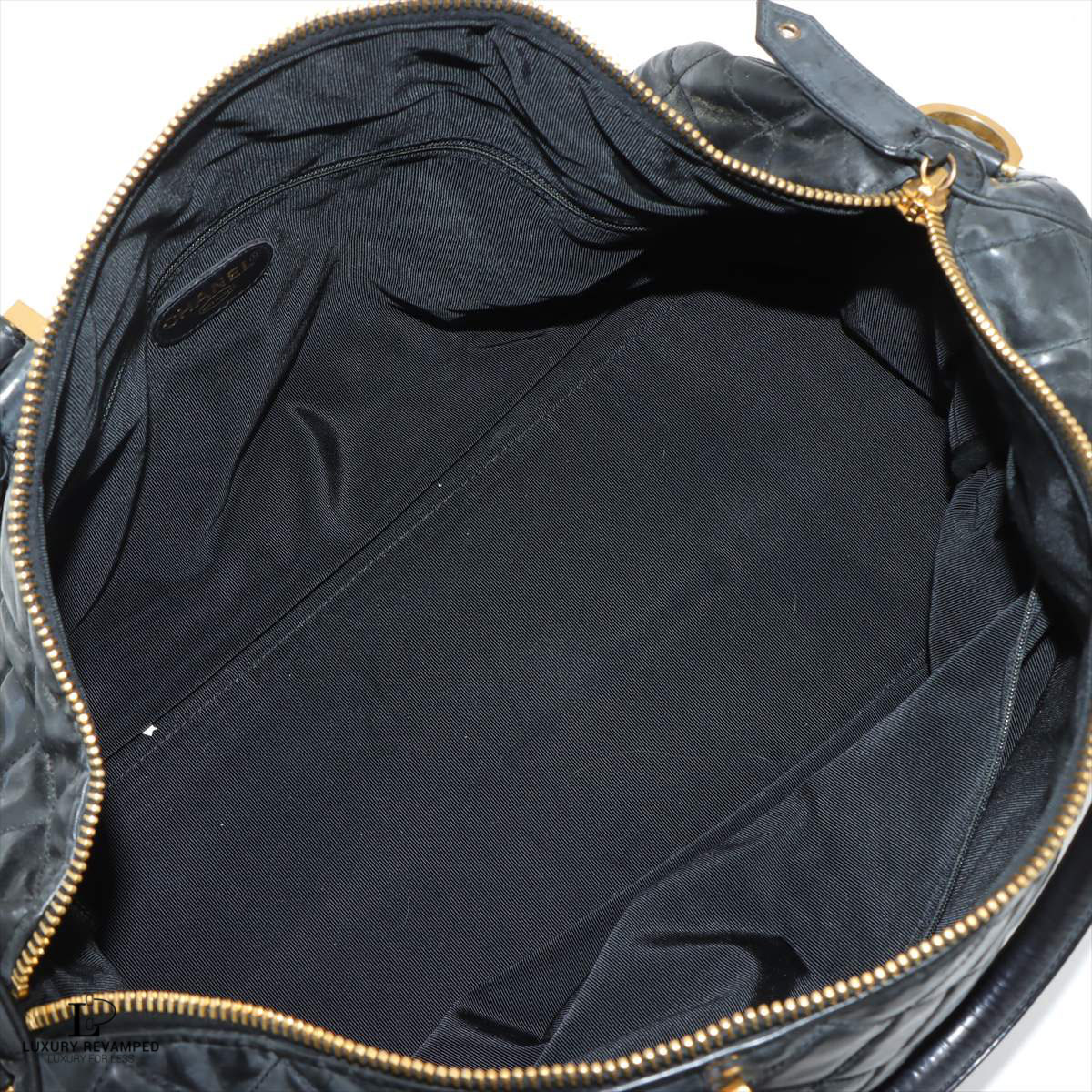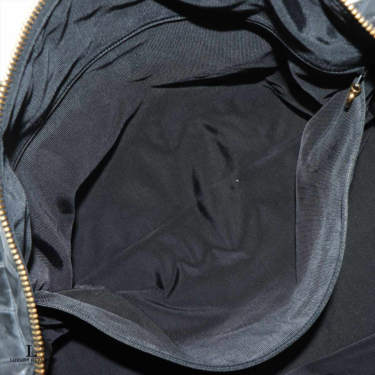 Large travel bag with removable strap. Main zip closure. Inside is a large zip pocket on both sides. Interior lining is clean and tidy. Gold hardware are shiny. All zip working. No tear or rips. Hologram is intact Coating on the body has aged.