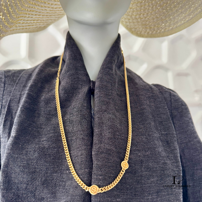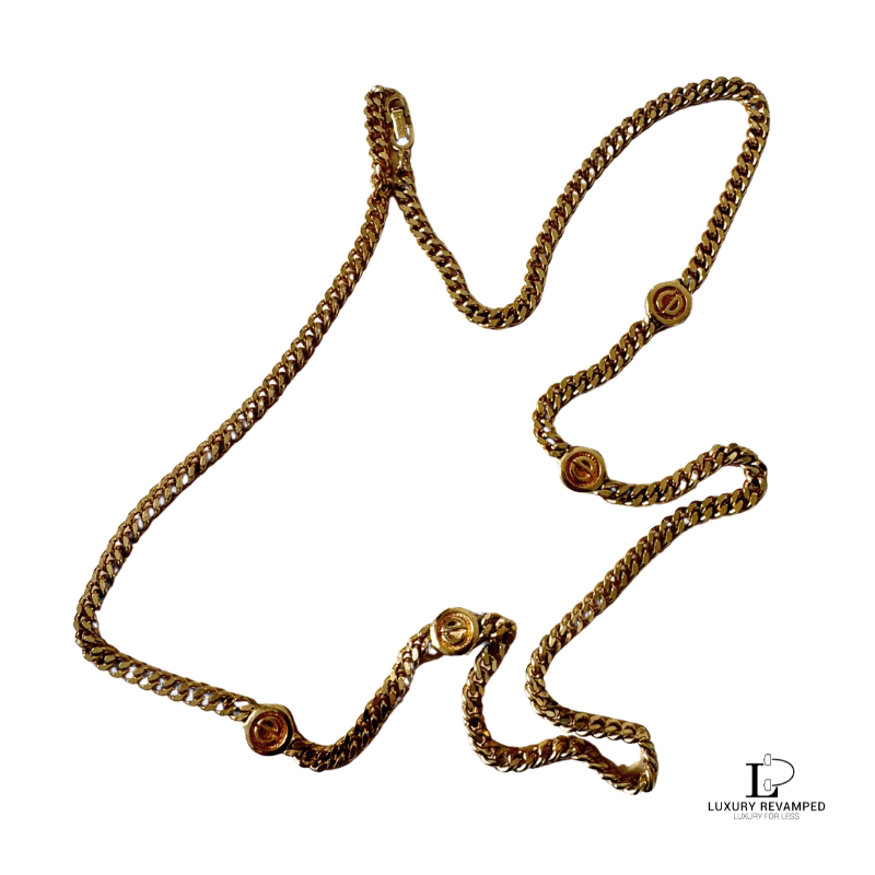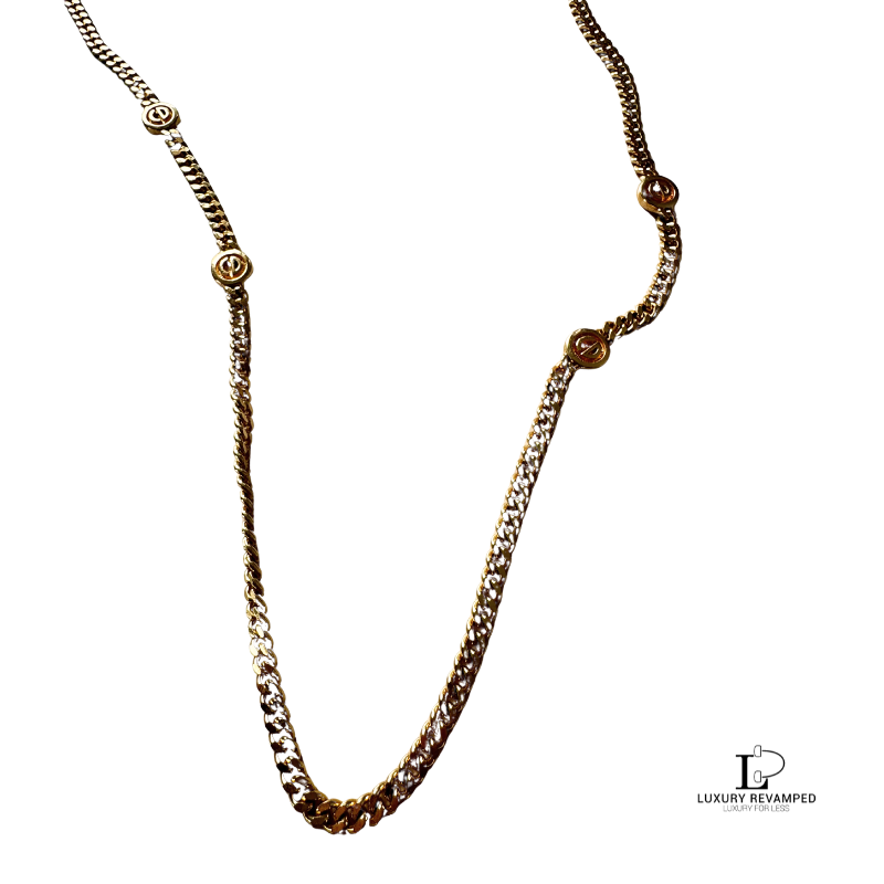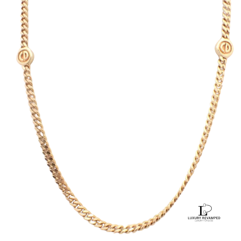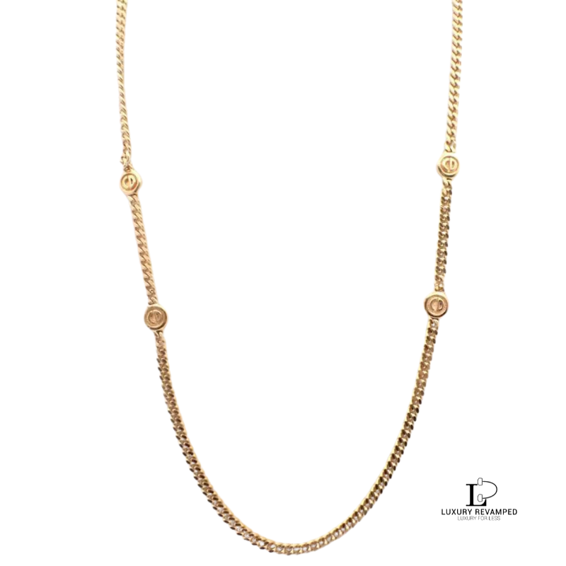 With the iconic ‘CD’ along the chain, and the long thick chain, this will sure add appeal to your outfit whether worn as it is or with two or more necklaces together.