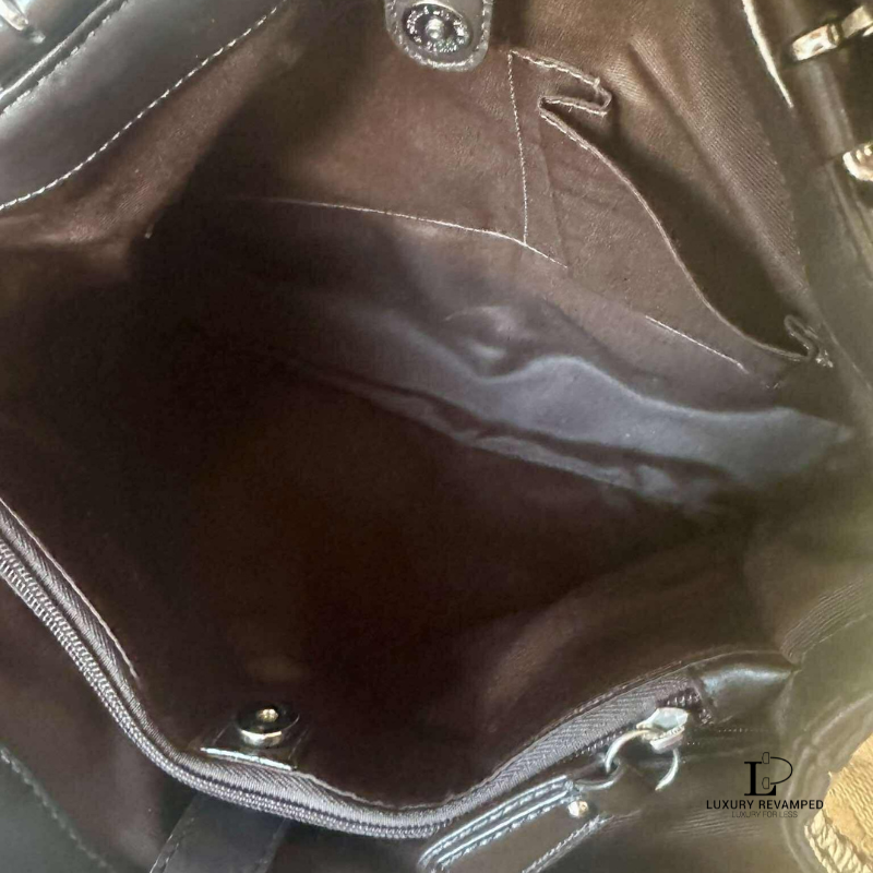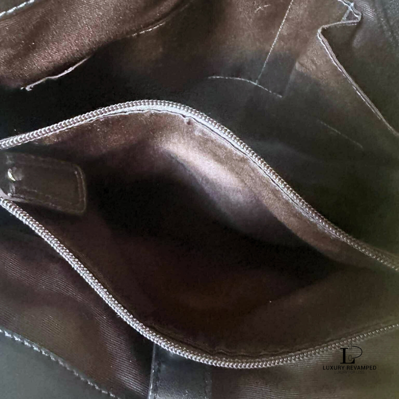Interior lining is clean and tidy. Body is in very good condition with no scuffs or rubs. Leather trims and handles are perfect with no crack. Zips working.
