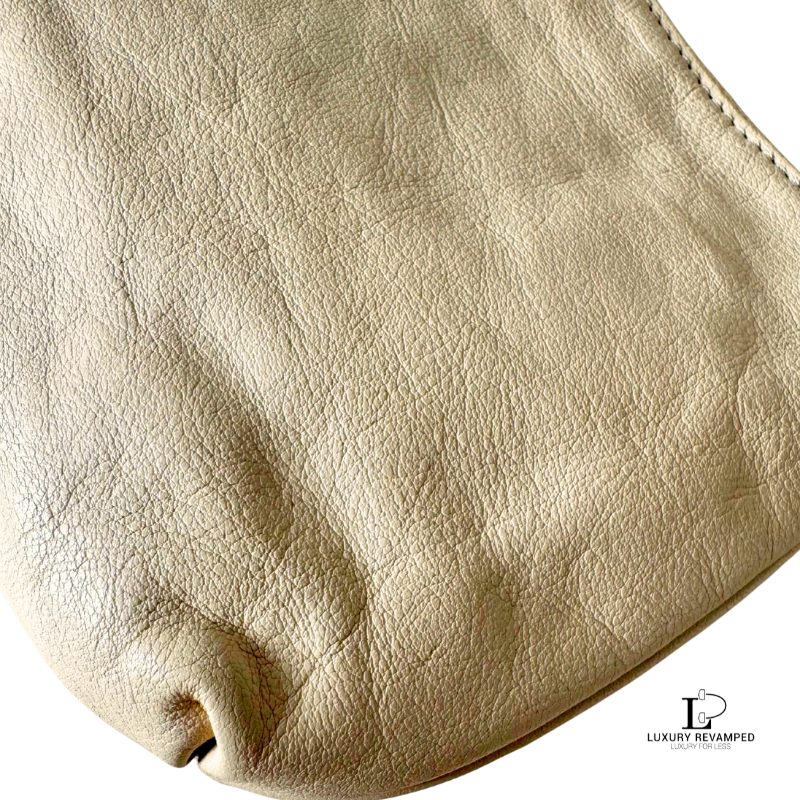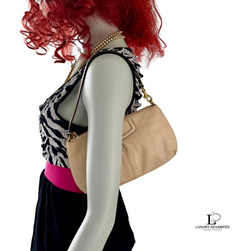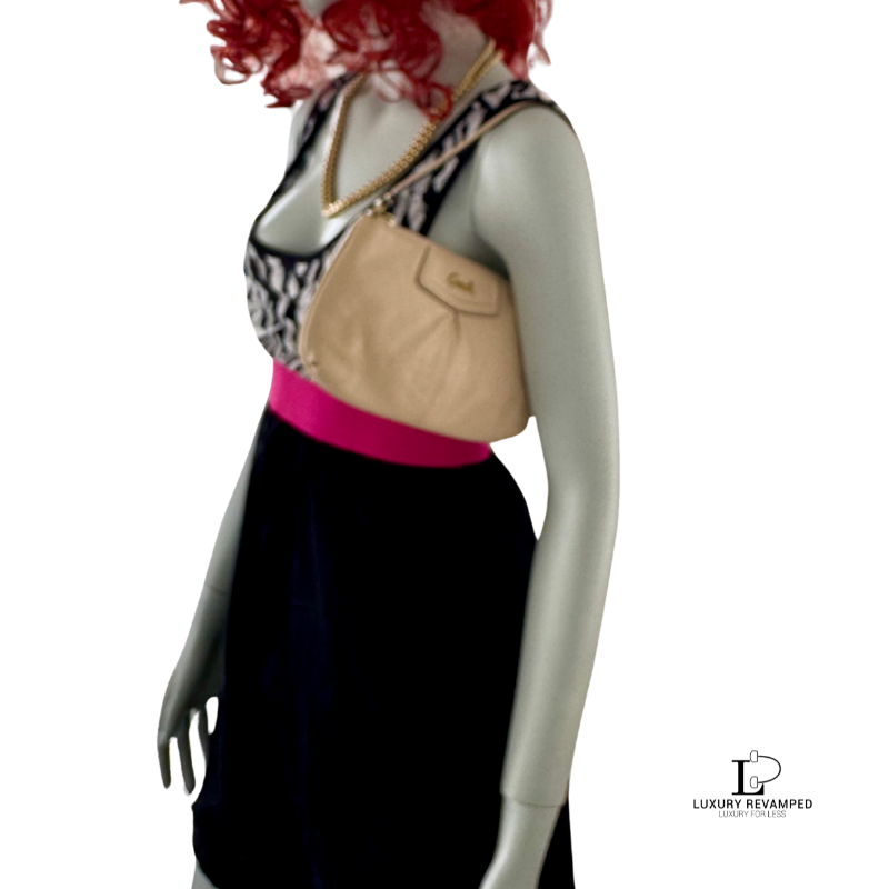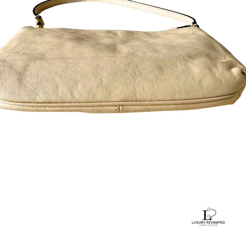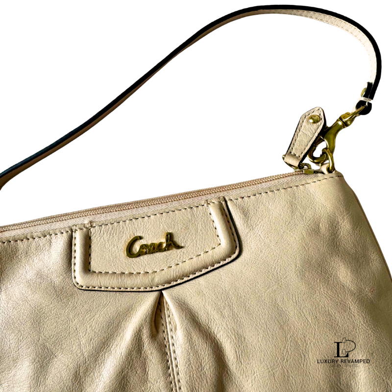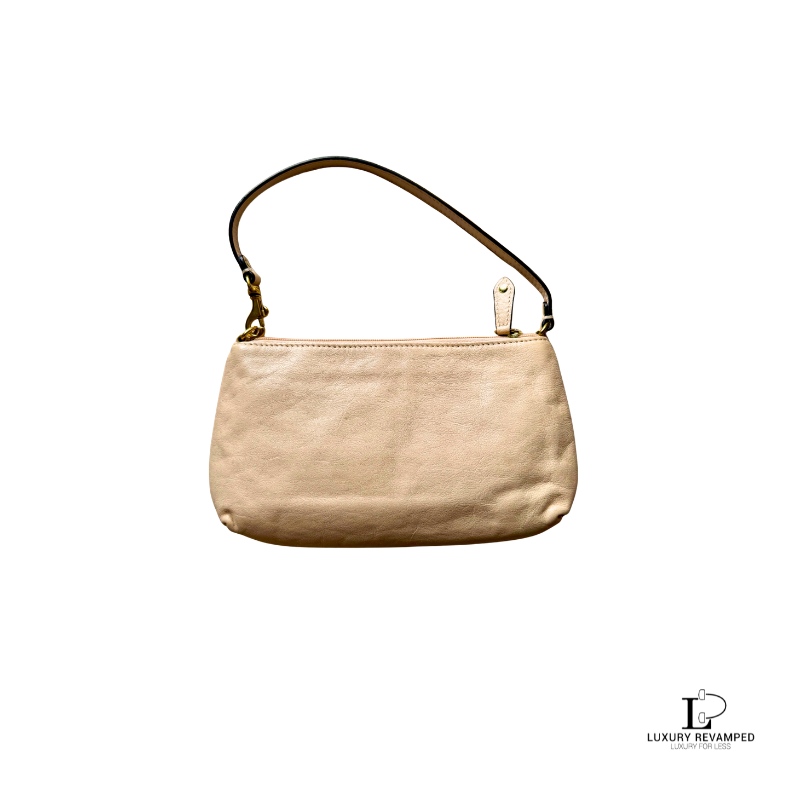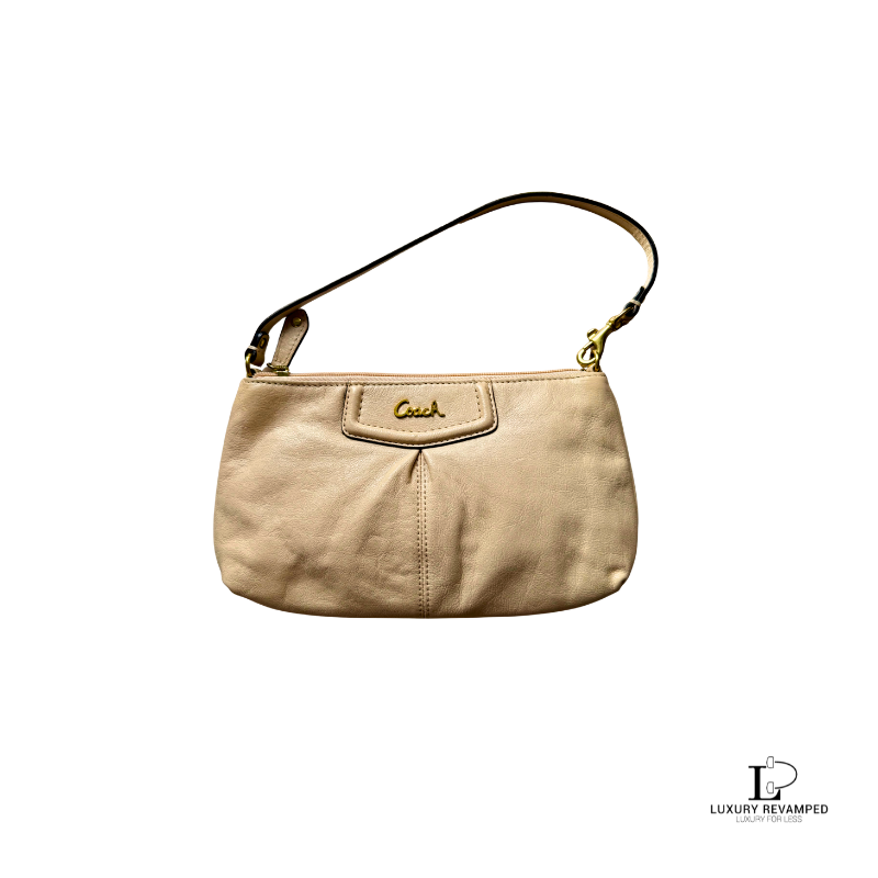 This pre-loved Coach leather mini handbag can double us wristlet or clutch with detachable strap on one side.