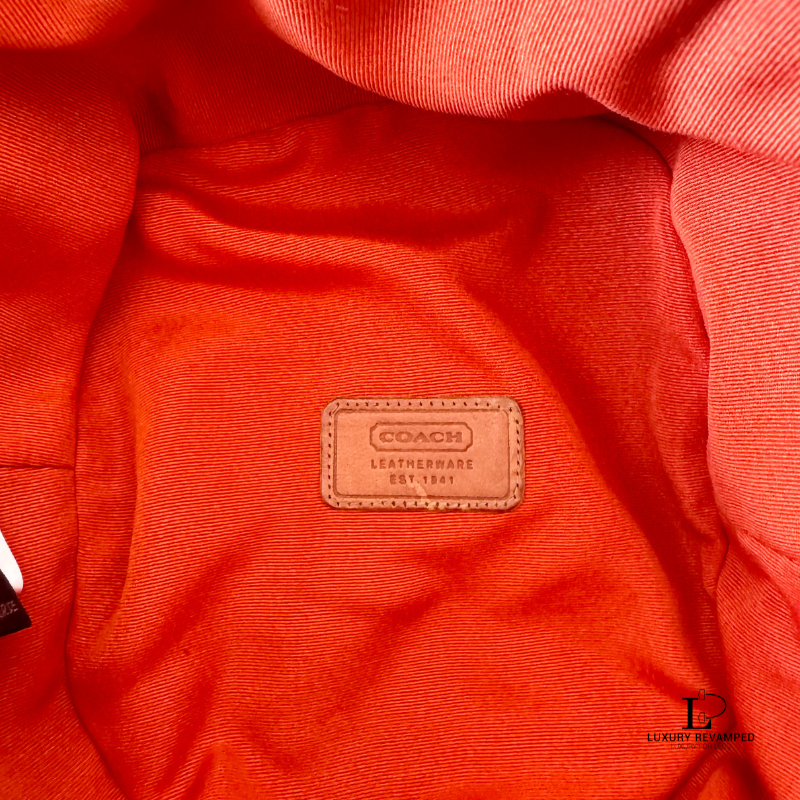 With iconic monogram Coach signature all over, accented with a leather trim.