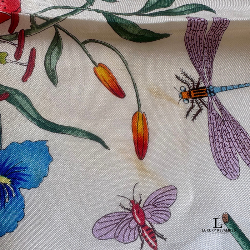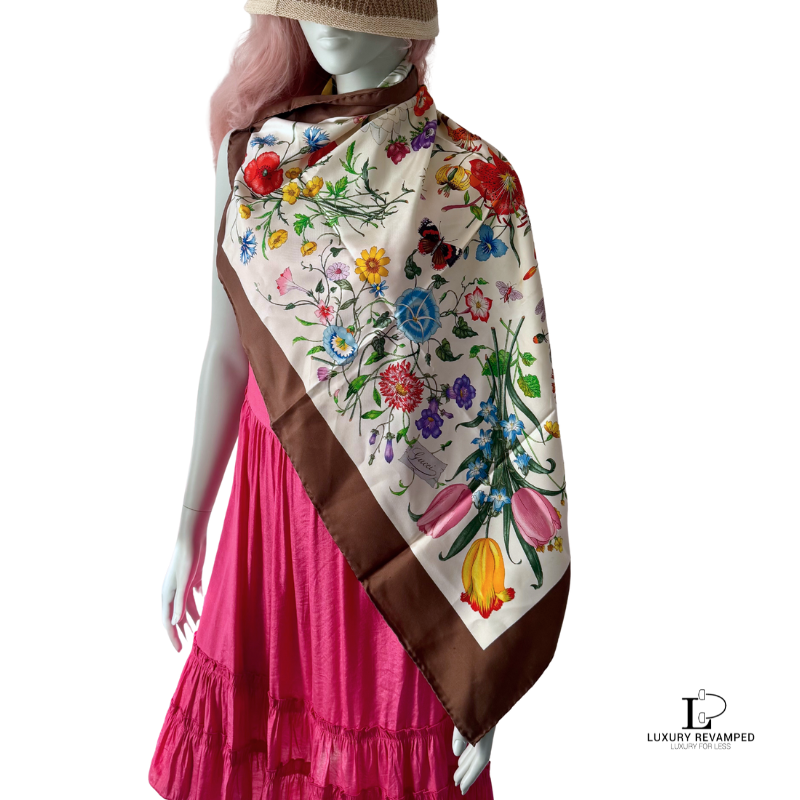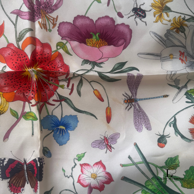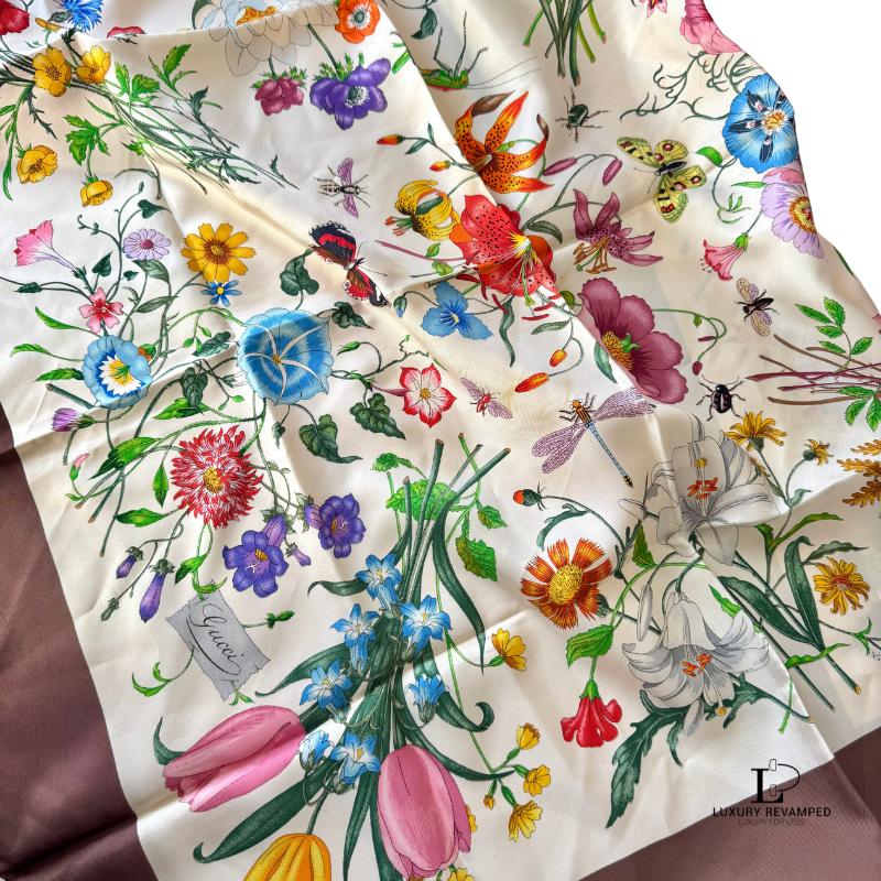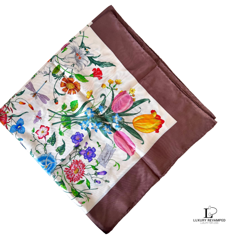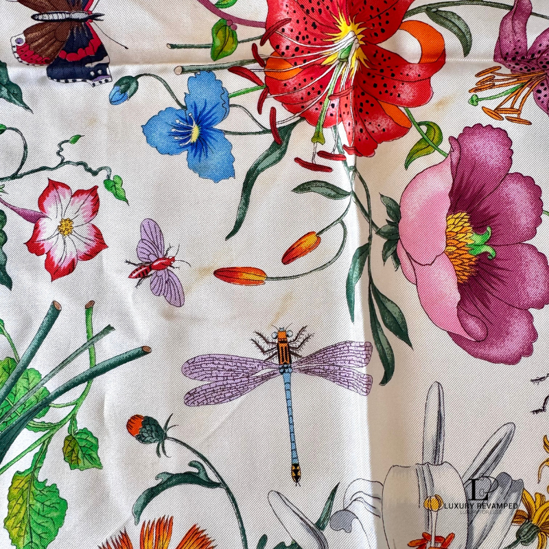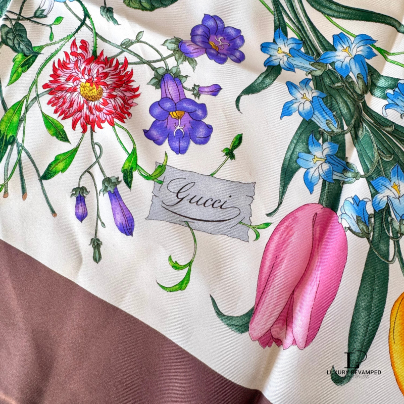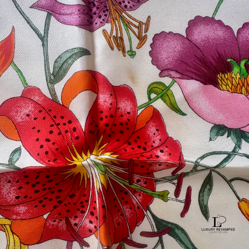 This pre-loved Gucci Floral Silk Scarf is in very good condition.