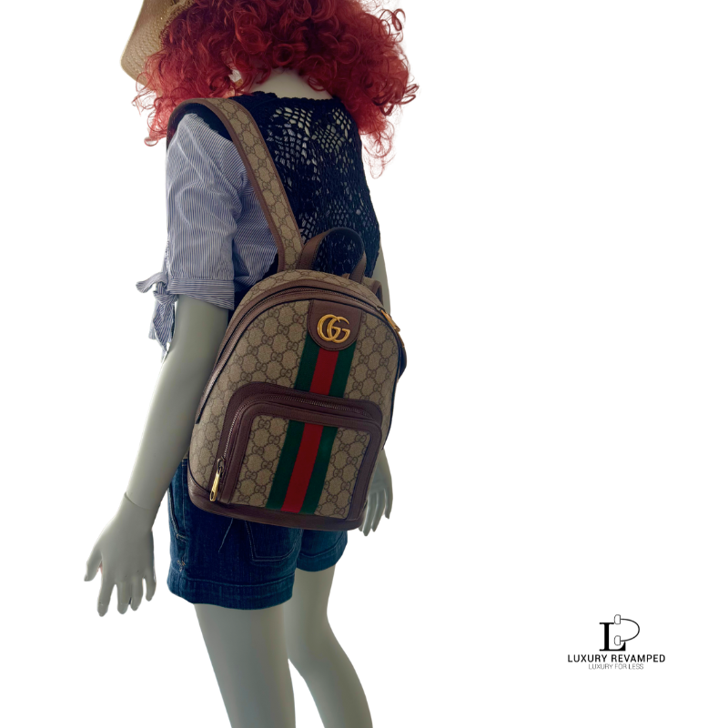 Elevate your everyday style with the Gucci Ophidia GG Supreme Small Backpack, a perfect fusion of vintage charm and modern practicality.
