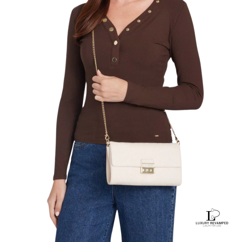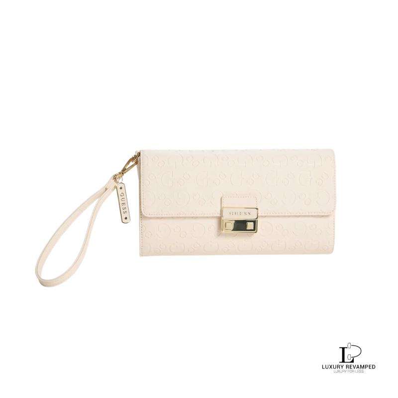 Crafted with a chic crème logo monogram exterior, this clutch showcases the unmistakable Guess branding in a refined and contemporary silhouette.