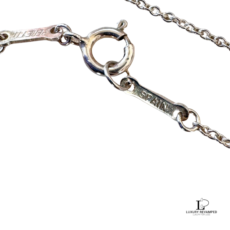 Expertly crafted in sterling silver, this necklace features the signature Star of David pendant, blending spiritual symbolism with Elsa Peretti’s renowned modern minimalism.