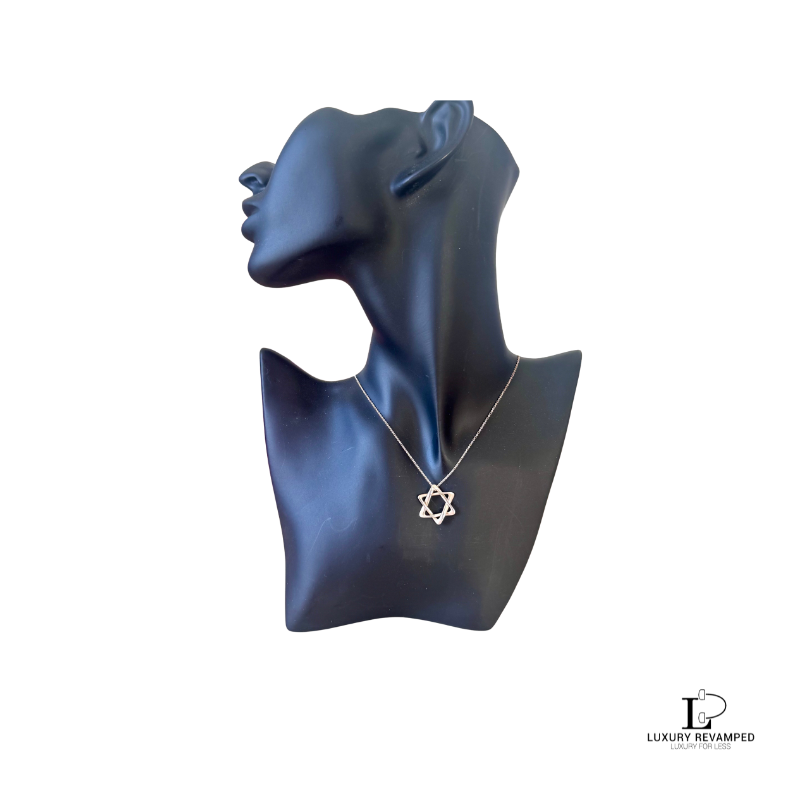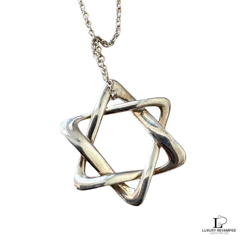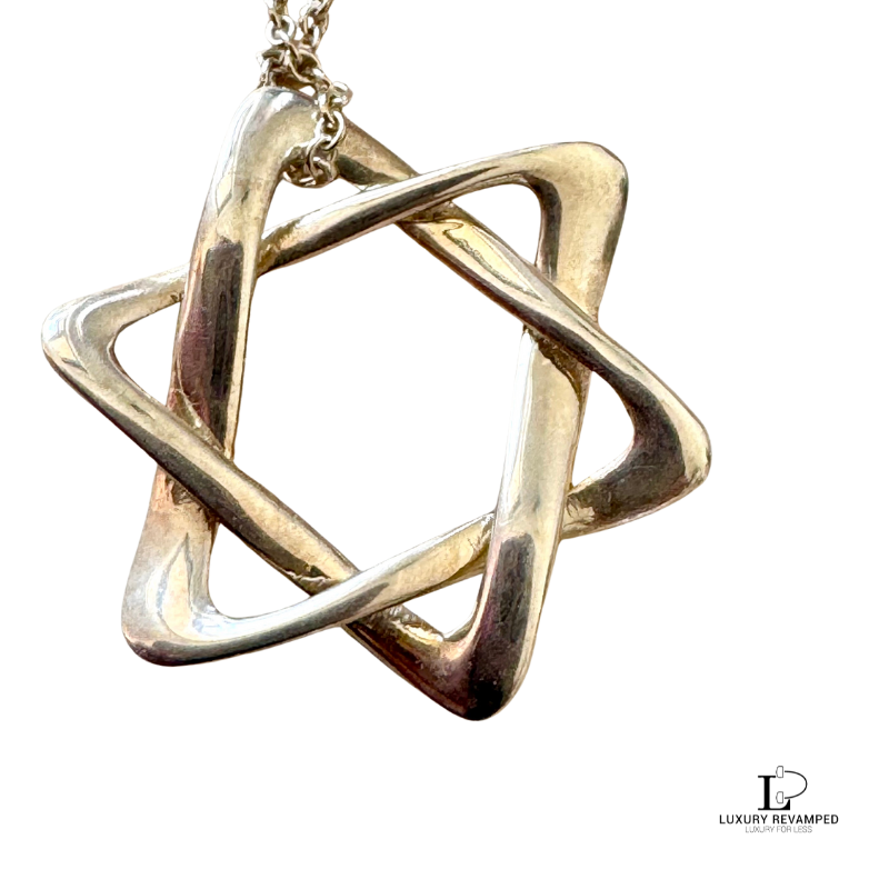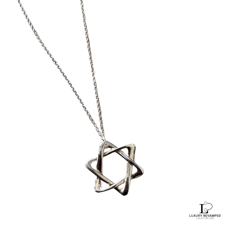 This preloved Tiffany & Co. Star of David Necklace is a beautiful way to honor tradition while wearing a piece of luxury designer jewelry that embodies Tiffany’s artistry and Elsa Peretti’s signature design philosophy.